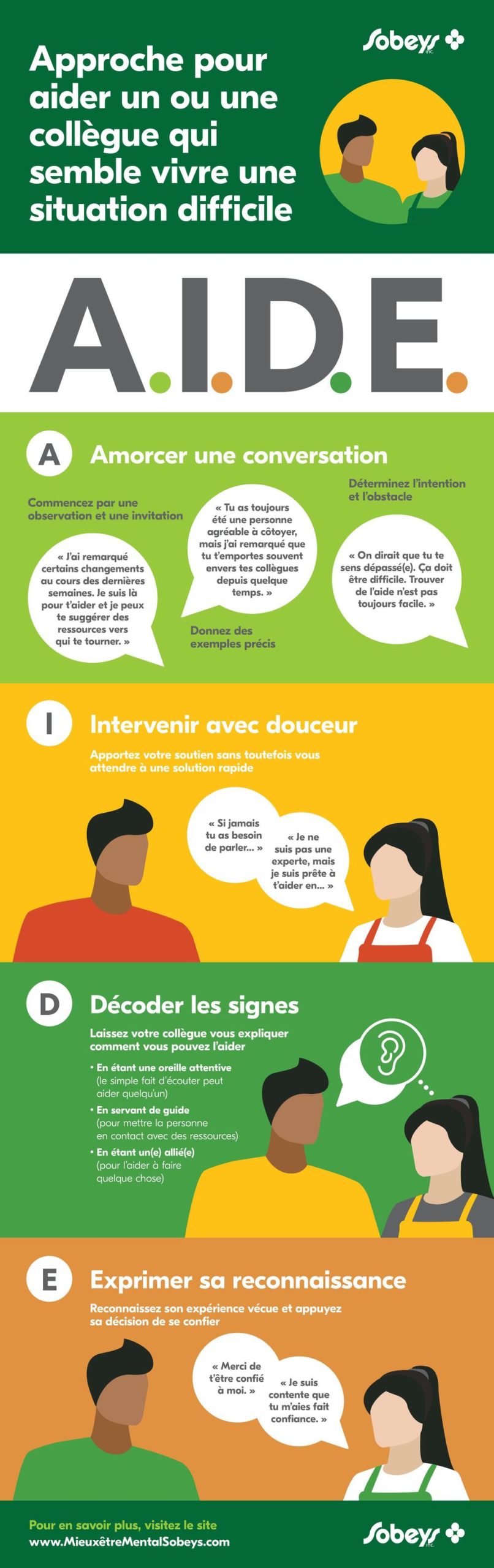 guide visual de conversation – Approche pour aider un ou une collègue qui semble vivre une situation difficile (A.I.D.E.)